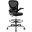 This drafting office chair is designed for counter-height and standing desks, offering a tall adjustable height range and a supportive footrest ring for comfortable sitting at elevated workstations. The ergonomic lumbar support helps maintain proper posture and reduces back strain during long hours of work. With smooth-rolling casters and flip-up armrests, the chair adapts easily to different tasks and home office setups